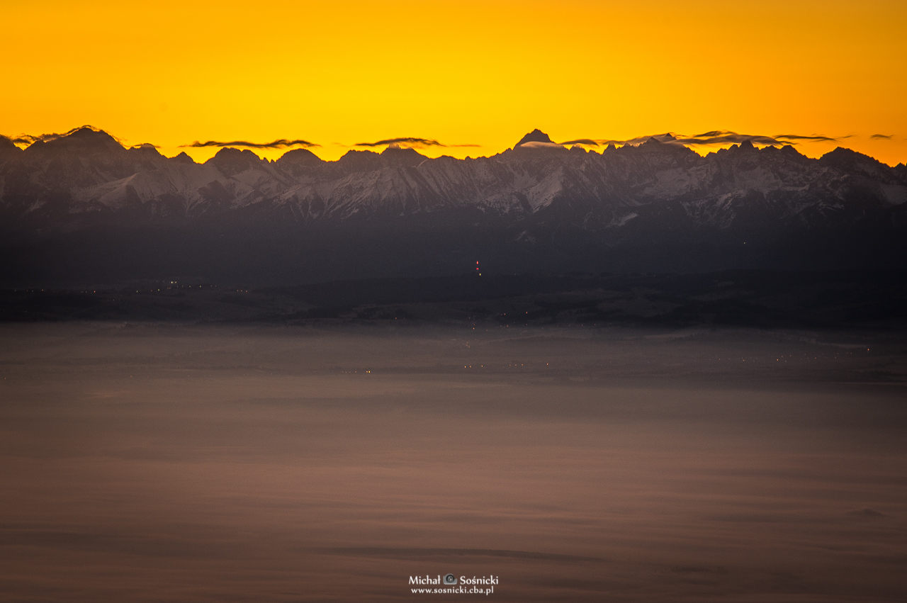| Tatry są już pięknie widoczne, choć do wschodu jeszcze blisko godzina... |