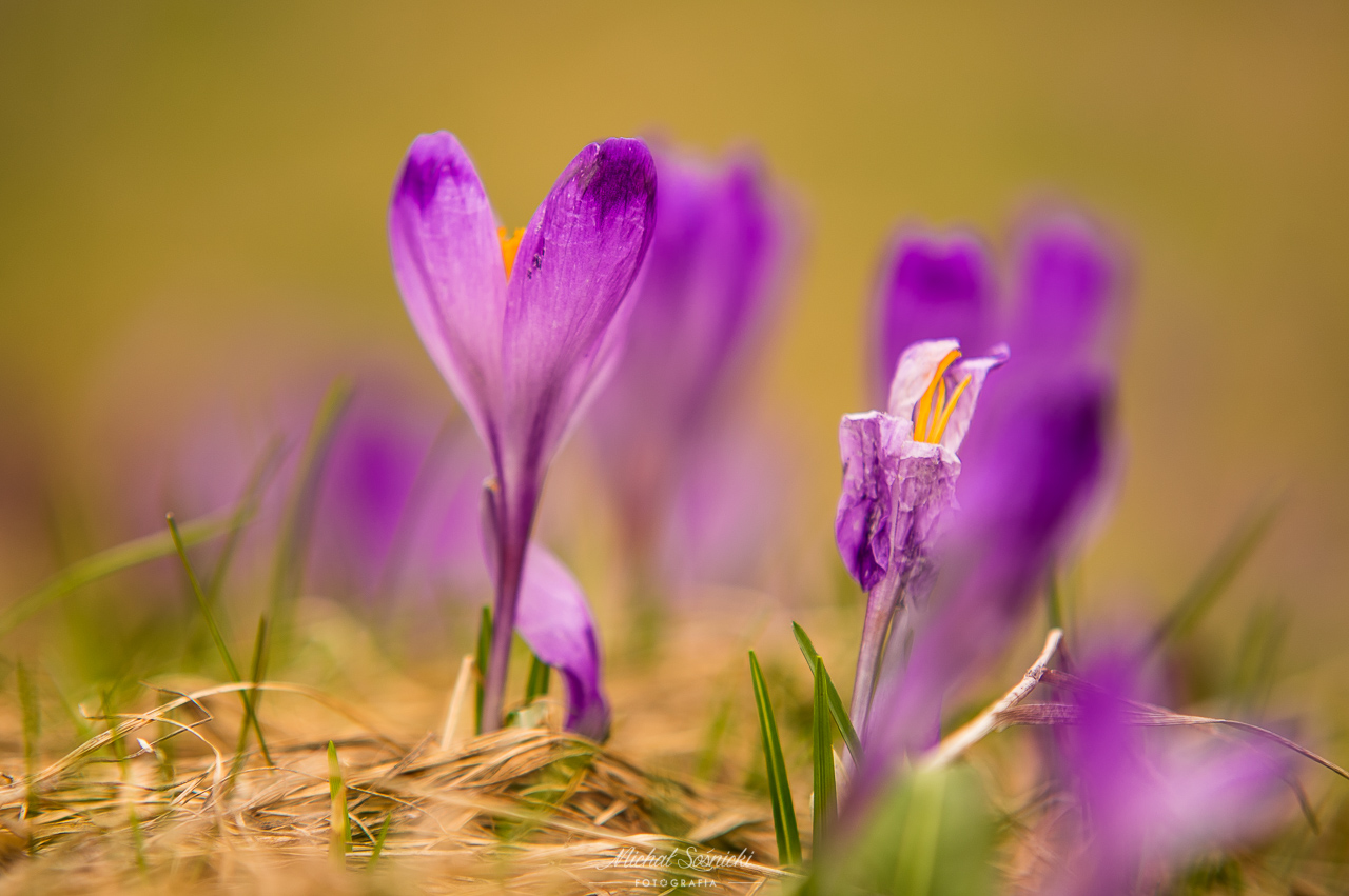 Na Polanie Kopieniec, spotykamy krokusy i nie może być inaczej - wyciągamy aparaty i zaczynamy je uwieczniać. Choć może to tak wyglądać że leżąc, niszczymy je ale w rzeczywistości staramy się tam to robić, by jak najmniej je uszkodzić...